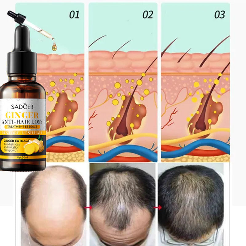 SADOER Ginger Anti-Hair Loss Oil nourishes the scalp, strengthens roots, and reduces hair fall using natural ginger essence for thicker, healthier hair with consistent use